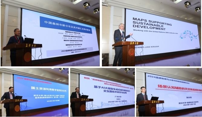 会上,加拿大皇家科学院院士陈镜明教授作题为“中国森林年龄分布及其对碳汇走势的影响”的特邀主旨报告;荷兰特文特大学Menno-Jan Kraak教授作题为“支持可持续发展的地图”的特邀主旨报告;昆山杜克大学刘耀林院士作题为“国土资源利用数字监管及应用” 的特邀主旨报告;广州大学张新长院士作题为“基于AI大模型生成式城市规划设计文生图技术研究与应用”的特邀主旨报告;武汉大学张永军教授作题为“场景认知辅助的天空地遥感影像匹配”的特邀主旨报告。会议还邀请中国科学院空天信息创新研究院高连如研究员、中南大学邓敏教授、武汉大学闫利教授、自然资源部国土整治中心王军研究员分享了最新的研究成果。