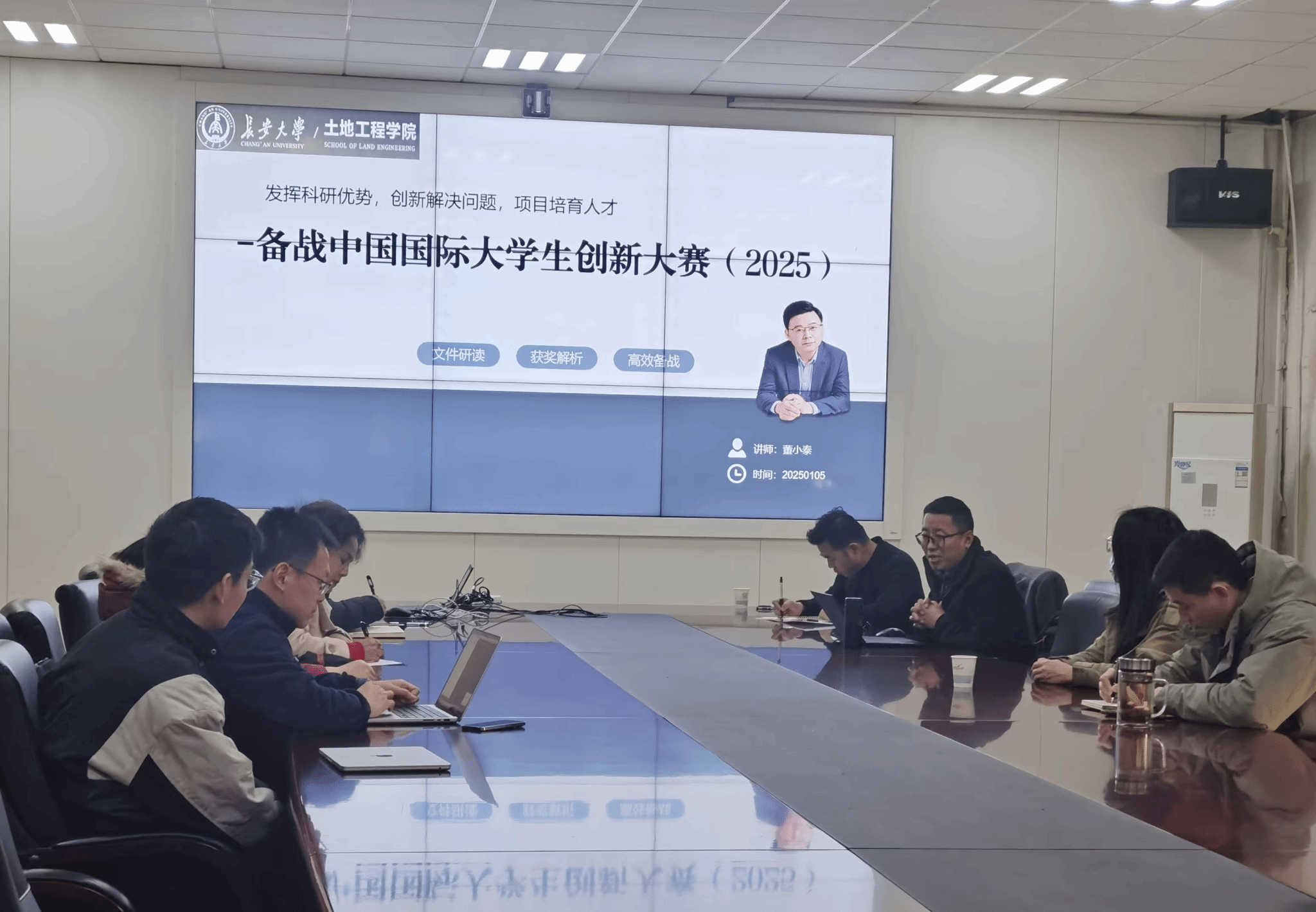 1月5日,由教务处、创新创业学院主办,土地工程学院承办的开云kaiyun官网双创大讲堂第17讲在南校区东院土地工程学院301会议室举办。此次讲座特邀西安市创业创新发展协会会长、陕西三健人才服务有限公司CEO、工信部产教融合产业实践教授,教育部万名创业导师董小泰担任主讲嘉宾,做题为“发挥科研优势,创新解决问题,项目培育人才——备战中国国际大学生创新大赛(2025)”专题培训讲座。讲座由土地工程学院副院长王晓峰主持,学院相关教师参加会议。