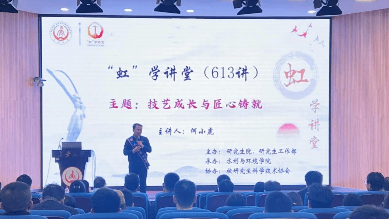 3月13日下午,由研究生院、研究生工作部主办,水利与环境学院承办,校研究生科学技术协会协办的“虹”学讲堂第613讲在南校区东院伯声报告厅举办。西安航天发动机有限公司高级工程师何小虎作题为“技艺成长与匠心铸就”的报告,相关学院共180余名师生参加讲座。