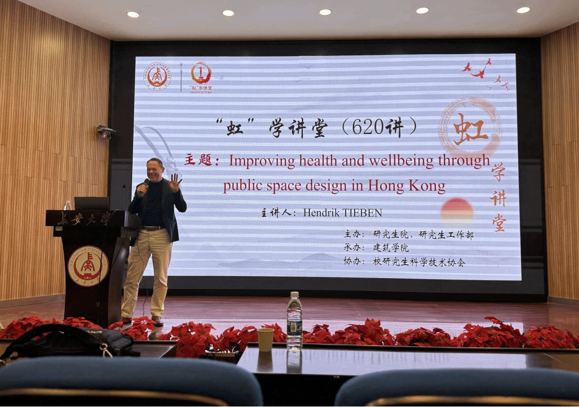 3月28日下午,由研究生院、研究生工作部主办,建筑学院承办,校研究生科学技术协会协办的“虹”学讲堂第620讲在南校区东院伯声报告厅举办。香港中文大学Hendrik TIEBE教授作题为“Improving health and wellbeing through public space design in Hong Kang”的报告,相关学院共100余名师生参加讲座。