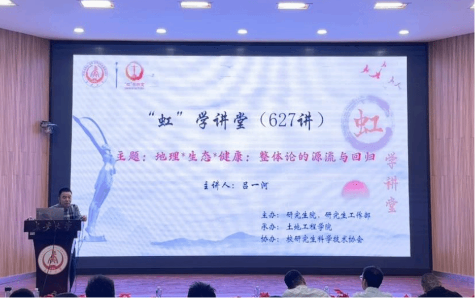4月10日下午,由研究生院、研究生工作部主办,土地工程学院承办,校研究生科学技术协会协办的“虹”学讲堂第627讲在南校区东院伯声报告厅举办。中国科学院生态环境研究中心吕一河研究员作题为“地理*生态*健康:整体论的源流与回归”的报告,土地工程学院副院长王晓峰教授主持报告会,相关学院共150余名师生参加讲座。