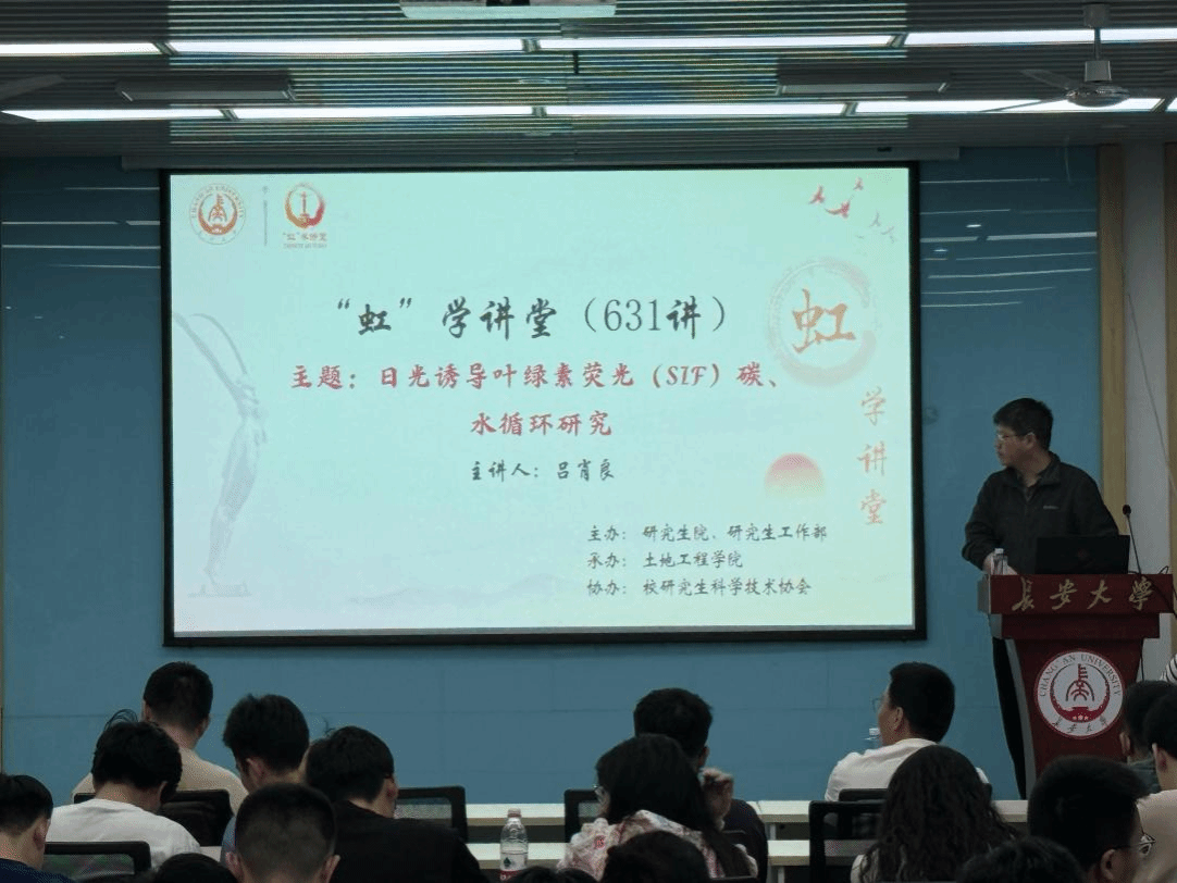4月19日下午,由研究生院、研究生工作部主办,土地工程学院承办,校研究生科学技术协会协办的“虹”学讲堂第631讲在南校区东院雁博园第一报告厅举办。西北农林科技大学吕肖良教授作题为“日光诱导叶绿素荧光(SIF)碳、水循环研究”的报告,土地工程学院刘明副教授主持报告会,相关学院共80余名师生参加讲座。