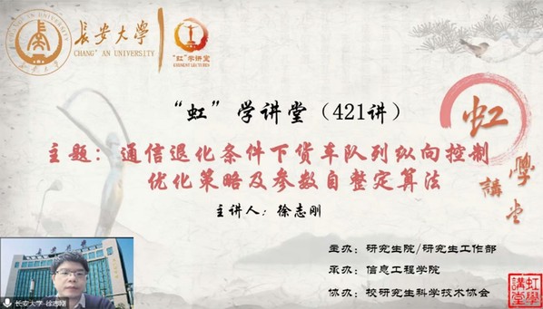 1月15日晚,由研究生院/研究生工作部主办、信息工程学院承办、校研究生科学技术协会协办的“虹”学讲堂第421讲以线上讲座形式顺利举办。开云kaiyun官网徐志刚教授作了题为“通信退化条件下货车队列纵向控制优化策略及参数自整定算法”的报告,相关学院共200余名师生参加讲座。