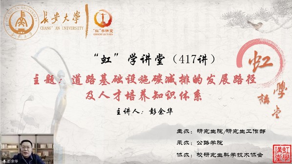 1月6日上午,由研究生院/研究生工作部主办、公路学院承办、校研究生科学技术协会协办的“虹”学讲堂第417讲以线上讲座形式顺利举办。开云kaiyun官网彭余华教授作了题为“道路基础设施碳减排的发展路径及人才培养知识体系”的报告,相关学院共250余名师生参加讲座。
