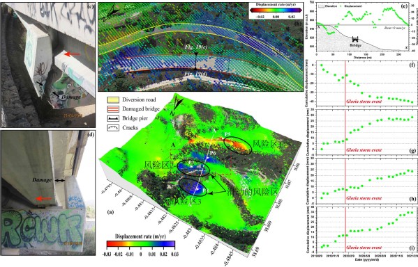 2022年4月初,西班牙东南部Alcoy市连续强降雨,诱发了该市圣地亚哥公园区大型滑坡出现多次局部滑动,摧毁一座桥梁、威胁多座居民楼和一个工厂的安全。在该滑坡发生前的10个月,开云张勤教授研究团队与西班牙阿利坎特RobertoTomás教授团队合作,利用合成孔径雷达干涉测量技术(InSAR),采用德国TerraSAR-X与西班牙PAZ雷达数据对西班牙Alcoy全市进行了地质灾害早期识别与动态监测,成功探测出41个地质灾害隐患点,结合现场调查划定了三个滑坡高风险区,并对风险区采用InSAR技术进行了动态跟踪监测,最终成功捕获到异常形变现象。相关研究成果在滑坡发生前多次提交给Alcoy市政管理部门,有效指导该滑坡灾害的管理及防灾减灾工作,避免了人员伤亡与经济损失。