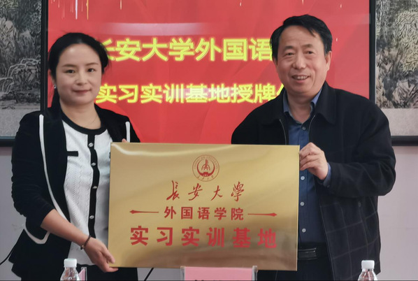 宋春红代表学院与岐山县恒源戏剧培训公司签订校企合作协议书,并为公司授予“开云kaiyun官网外国语学院学生实习实训基地”牌,双方就日后的交流合作达成初步共识。