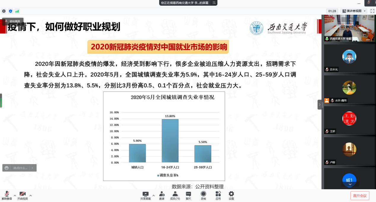 本次讲座在疫情关键时期为我院研究生进行了思想疏导,提供了未来就业的科学指导,关心关爱学生身心健康,确保防控工作有序有效地开展。