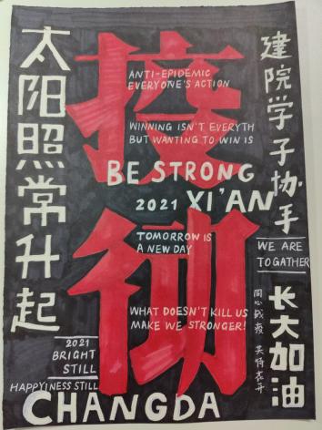 疫情无情,长安有爱,同舟共济,翰墨有情。建院学子时刻与学校同向同行,发挥特长寄情笔墨,凝心聚力共擎半边天,燃烧着胜利的火光。一笔一划皆是学子真情流露,亦是长大人的不屈与坚毅。我们坚信,明天是璀璨的!
