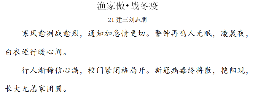 文章合为时而著,歌诗合为事而作。我院学子寄情诗歌,字里行间透漏着战疫必胜的决心;豪情满怀,彰显着长大人的自强与勇毅。
