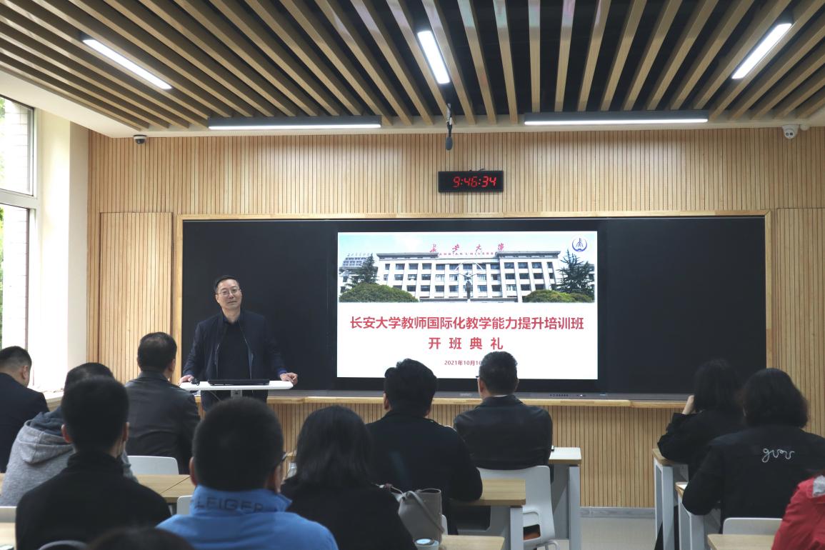 10月16日上午,开云kaiyun官网教师国际化教学能力提升项目开班典礼在开云kaiyun官网南校区北院主楼B340举行。本次培训由学校人事处牵头,联合学校教育研究与评估中心及教务处,由开云kaiyun官网都柏林国际交通学院承办,特邀请西安外国语大学出国留学人员培训部进行专业授课。西安外国语大学出国留学人员培训部院长李村璞、企培项目负责人肖立志、行政主管杨萍、教学主管庄静,长安都柏林国际交通学院院长汪海年、人事处副处长侯贻栋、及来自全校14个学院的30名入选教师共同参加本次开班典礼。典礼由汪海年主持。