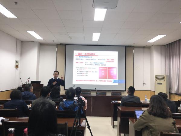 李继成围绕国家一流课程建设、大学数学课程建设、数学教学团队建设三方面展开讲座。在国家一流课程建设方面,他指出2018年新时代全国高等学校本科教育工作会议的召开标志着高等教育开启了新时代,并从国家政策指导、“五类”国家一流课程、国家一流课程申报和评选标准、教育部组织教学创新大赛等方面详细阐述了国家一流课程建设的重要性和必要性;针对大学数学课程建设方面,他谈到不仅要把握好教学内容组织、教学过程实施、教学效果评价和教学团队建设四个重点,同时还要注重课程体系建设、教材建设、教学改革、课程资源建设、课程思政育人等方面;随后,李继成讲到数学教学团队建设,他指出国家一流课程的建设离不开教学团队,一流的教学团队建设是国家一流课程建设的保障。最后,他对大家寄予了殷切希望,并诠释了教书育人的内涵——职业层面上勤奋认真,事业层面上追求卓越,艺术层面上形成特色。