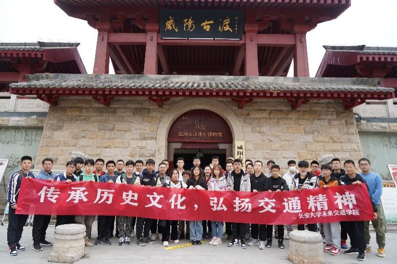 在咸阳古渡遗址博物馆,讲解员向大家详细讲解了咸阳古渡的悠久历史及其发掘过程,其曾作为“汉中八景”之一,在我国交通运输、历史文化等方面都具有重要意义。参观过程中,同学们感受到了咸阳古渡昔日的风采,赞叹于古代劳动人民的智慧及古遗址的魅力。同学们在博物馆上眺望汤汤渭河,纷纷表示要传承交通精神,励志在交通运输领域做出一番事业。