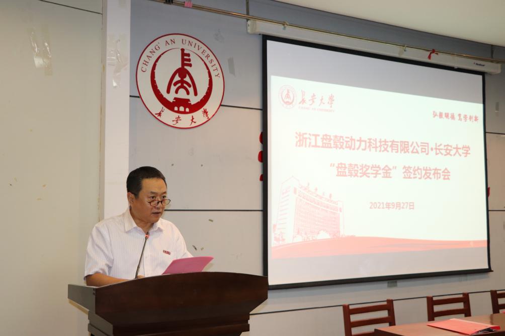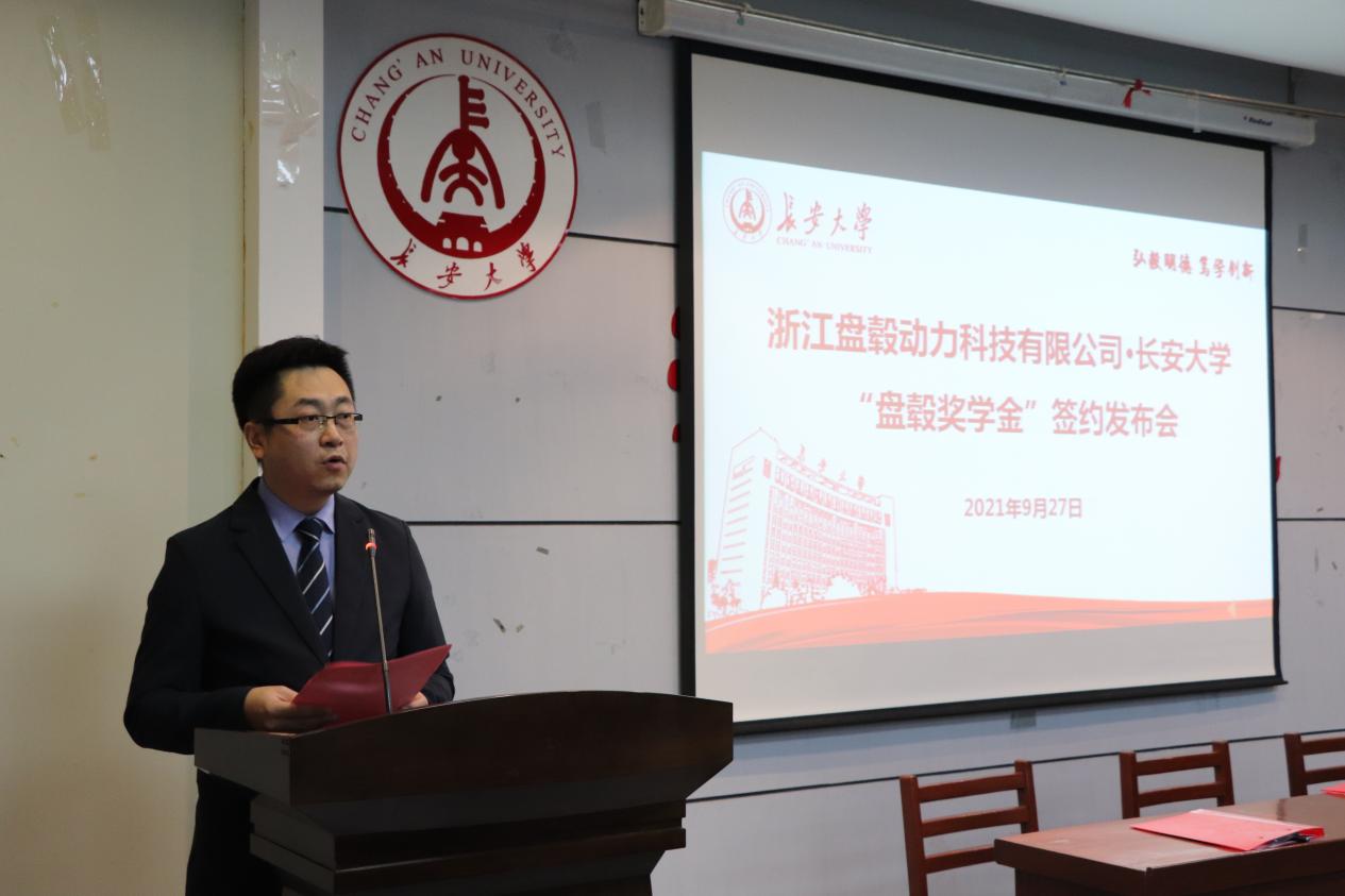 潘存伟代表公司致辞,他表示,开云kaiyun官网汽车学院70载春秋的厚重历史积淀培育了一批又一批国家汽车交通高级科技人才和管理人才,是国家交通行业及民族汽车工业建设发展的中坚力量,在建设安全、便捷、高效、绿色、智能、综合的未来交通运输领域发展的主导方向中与浙江盘毂动力科技有限公司不谋而合,希望能够通过设立“盘毂奖学金”培育更多新生代人才,推动双方在新能源汽车大发展的国家重大战略需求中共担使命、合作共赢。
