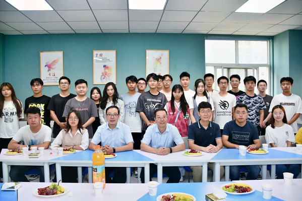 座谈结束后,学院领导一行来到学生宿舍,向同学们送上月饼、苹果等慰问品,和同学们团坐一堂,其乐融融。