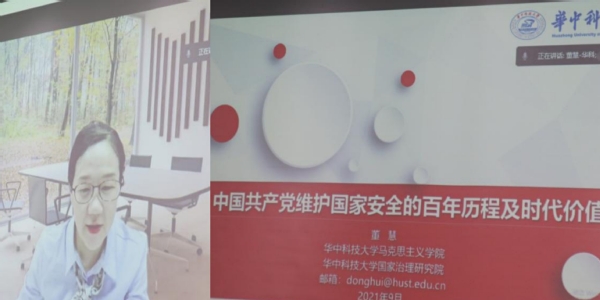 开幕式结束后,董慧教授以“中国共产党维护国家安全的百年历程及时代价值”为主题进行云端报告。董慧教授围绕从安全到总体国家安全、中国共产党维护国家安全的百年历程、新时代中国特色总体国家安全、中国共产党维护国家安全的时代价值四个部分展开论述。整个报告体系完整、内容丰富、思想深邃,真正做到了研究真问题,真研究问题。