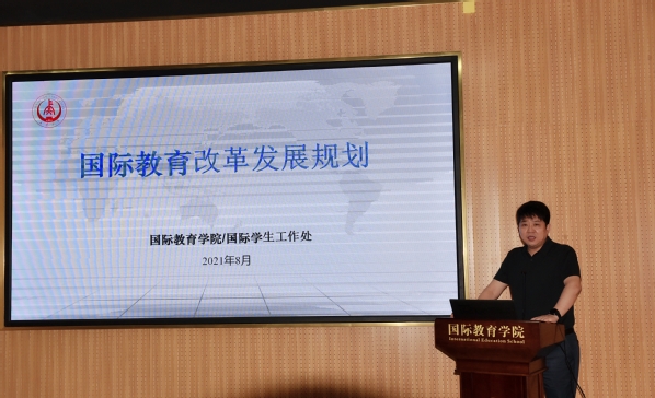 张伟在会上做了《国际教育改革发展规划》的报告。他在总结学院上半年工作成绩的基础上,结合学院发展的外部环境、趋势等,从“国际教育现状”“国际教育存在的主要问题”“国际教育改革发展思路”“国际教育发展愿景”四个方面,以数据为依据,向全体教职工阐述目前学院发展的方位和竞争力,分析学院面临的发展形势与发展需求,提出全体教职工要在新学期、新时期、新发展中开新章,布新局。要求全体教职工结合国际学生工作实际,不断提升自身业务素养,集中精力按照国际教育“十四五”发展规划,围绕来华留学教育“提质增效”中心,聚焦内涵建设和综合改革,推动我院各项工作再上新台阶。
