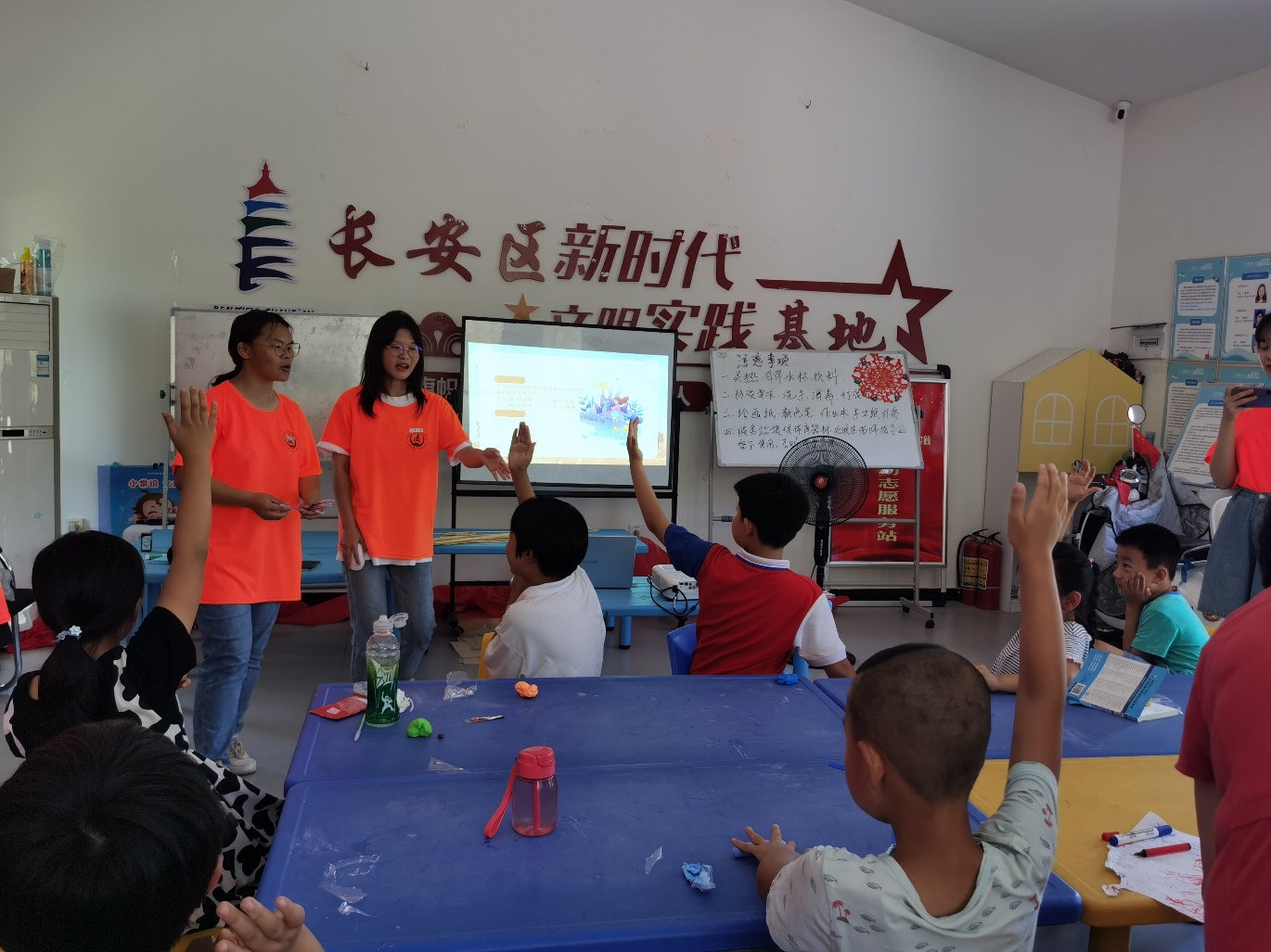 7月13日上午9点,实践队抵达本次社会实践的第二站——长安区兴盛村柳青纪念馆儿童服务站,在与服务站志愿者沟通交流后,实践队伍按照计划开展宣讲,主要进行十四运的知识科普和相关体育赛项的讲解。宣讲完毕后,开展了激烈的十四运知识竞赛。竞赛期间,孩子们踊跃发言,积极回答问题,收获知识的同时也赢得奖品。随后,实践队员邀请孩子们上台分享自己与运动的故事,孩子们想法独特,内容新奇,赢得大家的赞赏。早上的宣讲会在孩子们共同绘制十四运吉祥物的欢声笑语中结束。下午2点,实践队开始组织孩子们进行趣味小游戏,在考虑安全及参与情况等问题后,选择了击鼓传花,折纸,捏橡皮泥等活动。至此,实践队在柳青纪念馆儿童服务站的第一天顺利收官。实践队员们调动了学生积极性,让孩子参与到活动中,进一步加深对十四运的了解。同心同行,全民全运;与爱相伴,情暖童行这是此次最大的意义。孩子们的心灵需要用爱去温暖,实践队员们期待与他们的第二次见面。