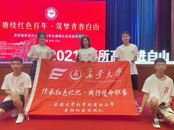 实践队在“赓续红色百年·筑梦青春白山”百所高校进白山全国大学生暑期社会实践活动启动仪式合影