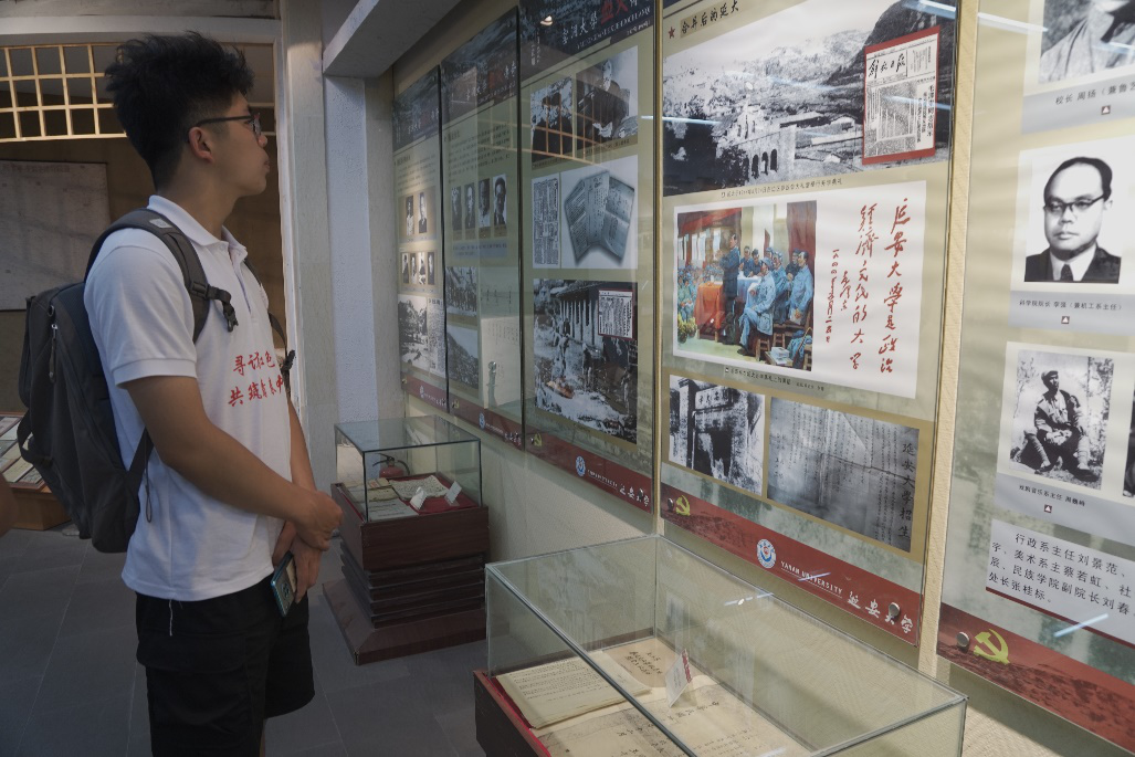 7月30日,实践队来到延安大学,深入学习了解延安大学的发展历程。延安大学诞生于抗日战争的硝烟中,是中国共产党于民主革命时期在根据地创办的第一所综合大学。延安大学依山而建,校史馆位于石窑建筑群的一楼窑洞中,而延安大学又俗称“窑洞大学”。通过参观馆内藏品与展板,队员了解到,延安大学响应党中央教育建设的号召,为中国的革命建设事业输送了大量人才,这也体现了中国共产党对人才培养与教育改革的重视。众多延大学子用知识武装自己,或奔赴战场奋勇杀敌,或投身建设报效祖国。探访延安大学校史馆,队员们感受到人才培养于革命事业、有志青年对国家未来的重要性。