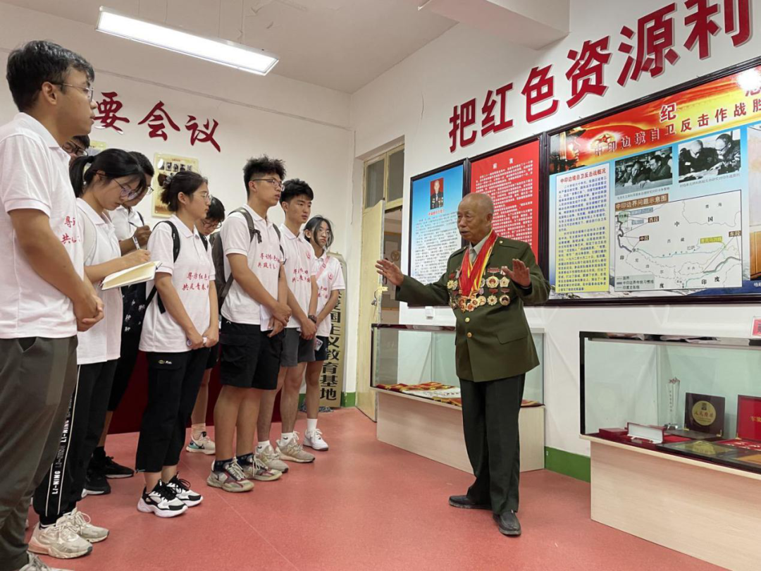 7月26日,实践团队前往延安市延川县,拜访了呼荣碧老人并参观了由他亲自创办的红色教育基地。呼老先生向实践队员讲述战争时期的英雄事迹。老先生以最真实的口吻描述中国共产党在那段岁月中发挥的重要作用,无私奉献、临危受命的革命精神让实践队员受益匪浅。队员们通过亲身感受革命前辈的事迹,深入理解了延安精神自力更生、艰苦奋斗的内涵。“只要哪里需要,我就立刻出发”。呼荣碧老人用实际行动诠释了民族复兴事业的应有之义。这种精神也触动着实践队员们爱国爱党的心,感召着实践队员们积极投入祖国未来的建设中去。