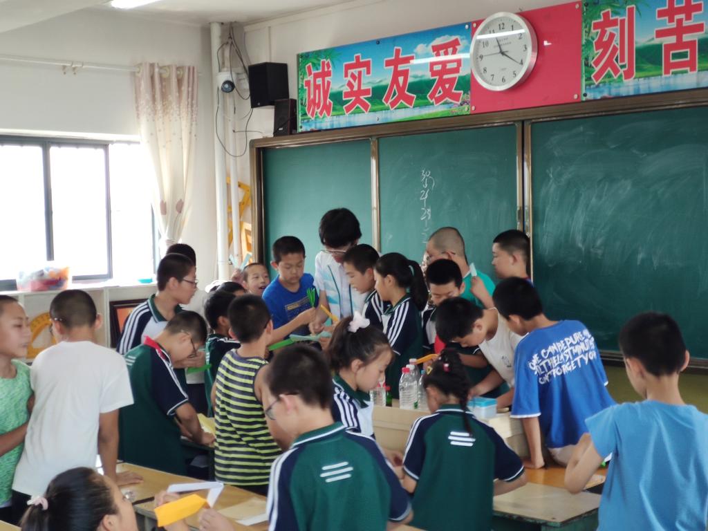 7月15日至16日,实践队前往佳县第一小学进行支教。实践队员深入挖掘红色资源,查找书籍资料,参观红色基地。认真做好各项准备。在课堂上,实践队员讲述了佳县当地的革命史,尤其是《东方红》的创作过程。同时,向小学生们讲述了雷锋、石光银、路生梅等优秀共产党员的故事。实践队员还与小学生们一起诵读“请党放心,强国有我”。通过开展科普小课堂,制作可控方向飞机,演示碘伏变色等小实验,向小学生宣传了科普知识,锻炼了动手能力。通过分享摄影技巧,与小朋友们亲密互动,教会他们如何拥有一颗善于发现美的眼睛,用手机去捕捉生活中的美好事物,开拓了小学生的视野。当地学生对知识的渴望与积极的态度深深的感染了实践队员,队员们与小朋友们一起度过了美好的支教时光。实践队员们希望通过自己的努力,促使当地小学生传承红色基因,涵养科学素养,做到全面发展。