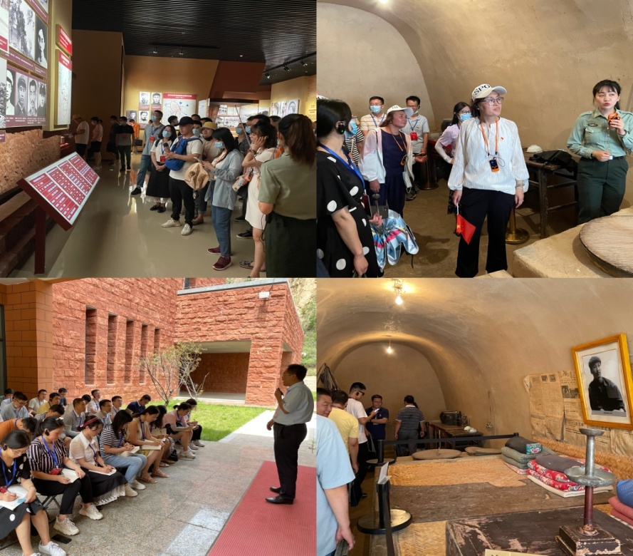 16日,全体人员来到宝塔山进行研学,“巍巍宝塔山,滚滚延河水”,中共中央进驻延安后,这座古塔成为革命圣地的标志和象征。在宝塔山下,全体教师党员面对鲜红的党旗重温入党誓词,再次用信仰的力量涤荡灵魂、振奋精神。在杨家岭革命旧址,各位教师参观了毛泽东种过的菜地、毛泽东旧居、朱德旧居、中共中央办公厅、中央大礼堂等革命旧址,一孔孔窑洞、一件件家具、一张张照片,无不映衬着革命年代领袖们在艰难困苦中闪耀着的红色光辉、思想伟力与精神信仰。