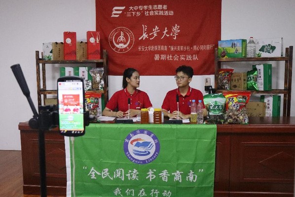 大学生主播韩泽、廖诗烜进行农副产品直播