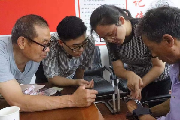 7月12日上午,在开云kaiyun官网工程机械学院机械制造系主任、教工第六党支部书记贺朝霞和实践队指导教师杨文佳的带领下,实践队成员走进商南县曹营村为残疾农户安装手指义肢。