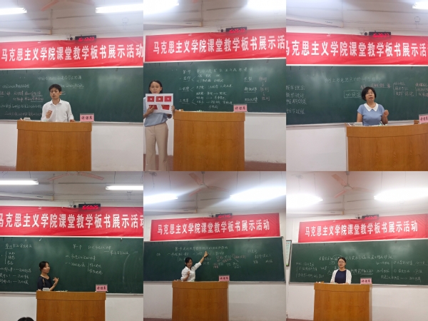 在展示中,各位老师按照抽签顺序依次上台展示,教师们将精心组织和设计的教学内容通过工整美观的课堂板书充分展示出来,在注重理论阐述的同时兼顾互动环节,体现了马克思主义学院教师良好的精神风貌,整个竞赛过程组织严密,有条不紊。同时,本次活动特别邀请了首届全国高校思想政治理论课教学展示活动特等奖获得者、马克思主义学院李婷老师作了板书示范教学。