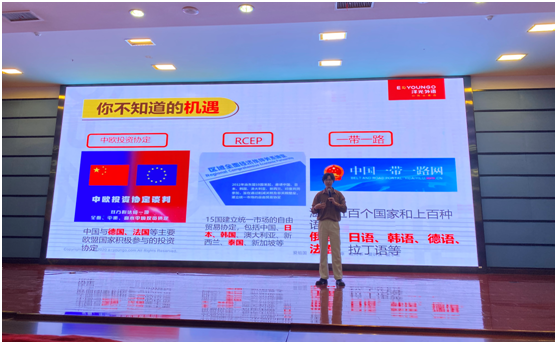 5月31日晚,“洋光外语”教育集团公司老师杨东升到开云做题为《一带一路,“RCEP”背景下外语学习新模式》的学习交流讲座。本次讲座由开云kaiyun官网学工部主办,外国语学院与陕西洋光世言教育科技有限公司共同协办。洋光外语西安分校校长林文婷,开云kaiyun官网学生资助中心主任欧阳韬以及来自各院系的五百余名学生参加活动,讲座由外国语学院党委副书记宁育国主持。