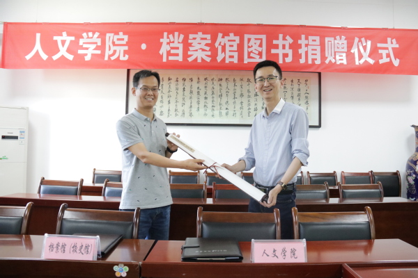 刘伟代表档案馆对人文学院的捐赠表示了诚挚的感谢,他表示此次捐赠丰富了档案馆的馆藏,助力了学校史志资源建设,档案馆将充分利用馆内平台,对展品进行宣传和展示。