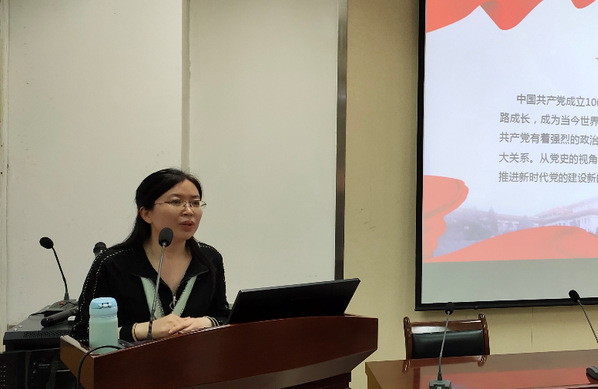 沈秀芳副教授作题为《从党史中汲取前进的智慧和力量》的主题报告。她从“党史发展脉络”、“党的历史贡献”以及“党史的宝贵经验”三个方面展开,以时间为轴、以重大历史时间为纲,用真实的历史事件、历史人物、历史会议,系统讲述了中国共产党成立100年来,从小到大、从弱到强,攻坚克难,一路成长为当今世界第一大党的奋斗历程,使大家对党的百年奋斗历史和开展党史学习教育的重大意义有了更为全面深刻的认识。