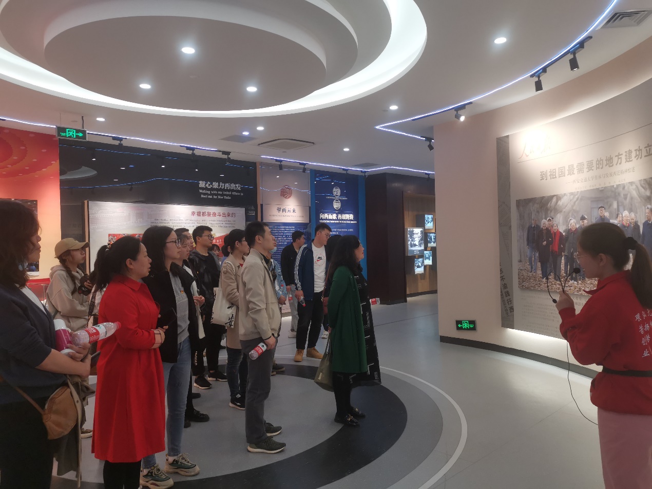 在讲解员带领下,大家参观了“溯源”“西迁”“致远”三个展厅,展厅以图文实物和多媒体等形式溯源南洋、致敬西迁、向西而歌,集中展示了一群胸怀报国热忱的知识分子,积极响应党的号召,放弃优越的上海生活,支援大西北建设,为西部发展、国家建设奉献智慧和力量的创业历程。