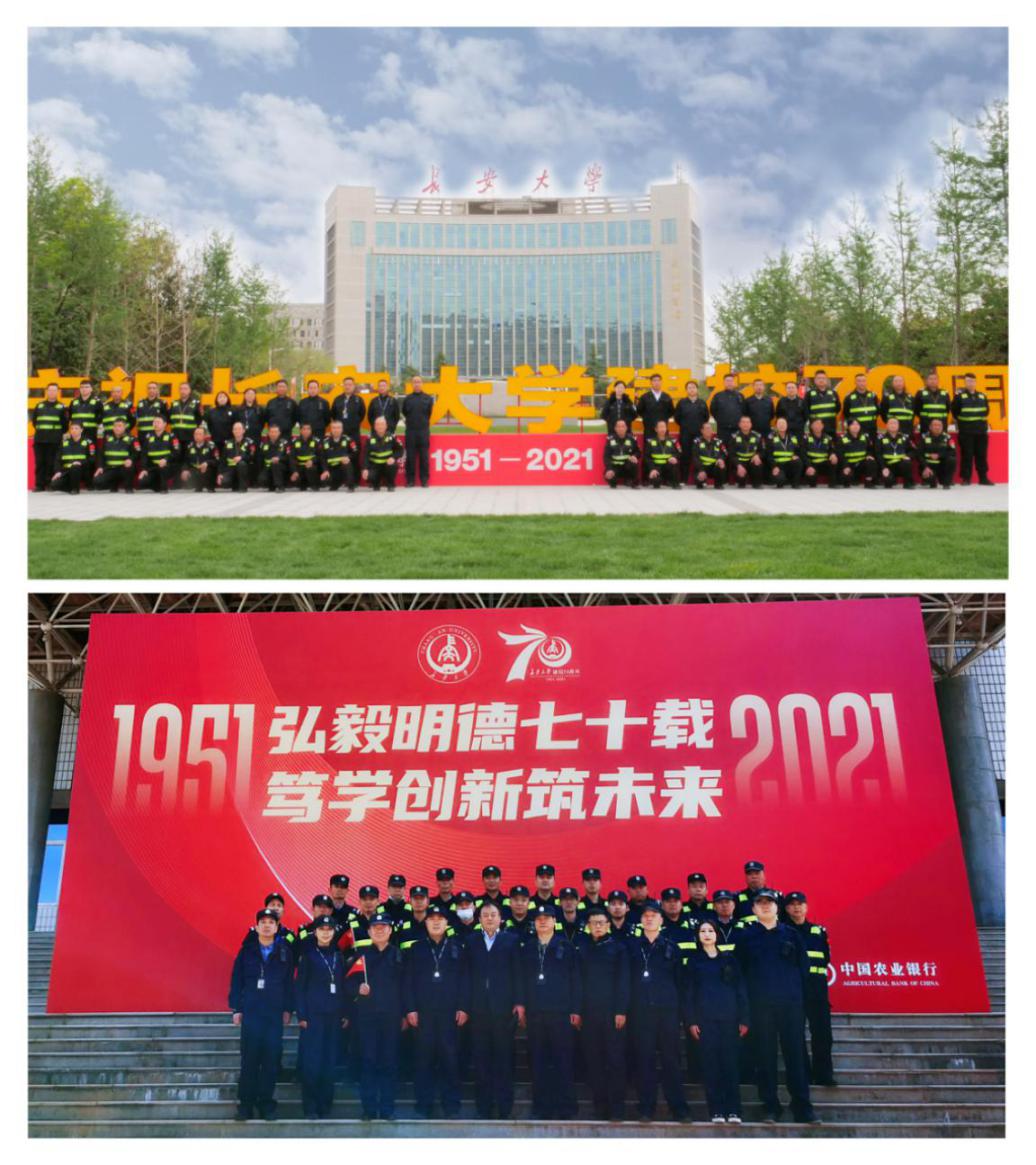 从前期工作筹备,到校庆中门岗值守、交通指挥、活动安保,保卫处全体人员尽职尽责、相互协作,凝心聚力、恪尽职守,筑牢安防堡垒,充分展现长大保卫队伍精神风貌,圆满完成了此次开云kaiyun官网70周年校庆校园安全保卫任务!