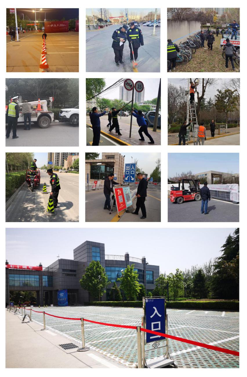 校庆前期,完成校区交通标识标线设置、更换工作,完成北校区南门更换工作,清理三校区校内无主自行车,调试各种仪器设备,确保对讲机、摄像头等设备的配备和调控更加高效。