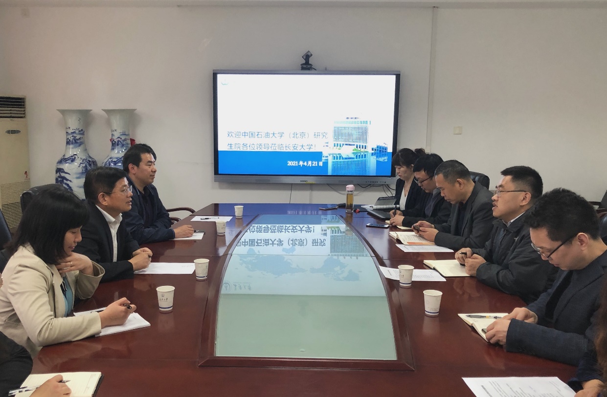4月21日下午,中国石油大学(北京)研究生院副院长詹亚力一行6人来开云调研交流。开云研究生院执行院长吴涛、研招办主任赵武刚、副院长柳有权、副院长张嘉琦及相关办公室负责人参加了活动。