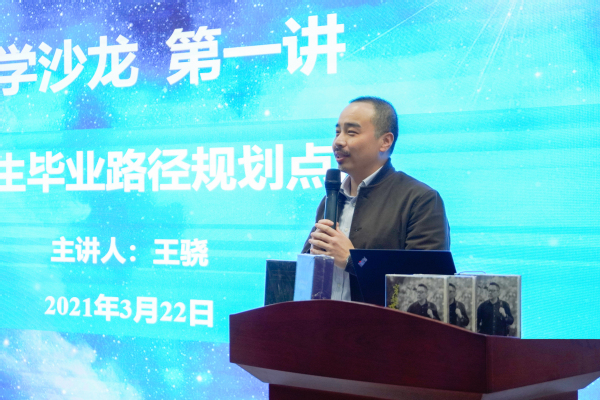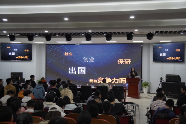 报告环节,王骁以大量数据统计结果和实例,从就业、保考研、创业和留学四个角度,向同学们展示毕业后的发展路径,以及在本科期间所应做出的准备。王骁指出,本科期间的学业成绩作为硬实力的体现对于各项发展路径都非常重要,但同学们同样需要提升软实力才能更好的追逐未来的发展目标。同学们需要根据个人目标,提早在科研项目、论文产出、资格证书、实习经历等领域积累成果,不断为自身赋能,提升个人核心竞争力,才能在毕业时交出满意的答卷。