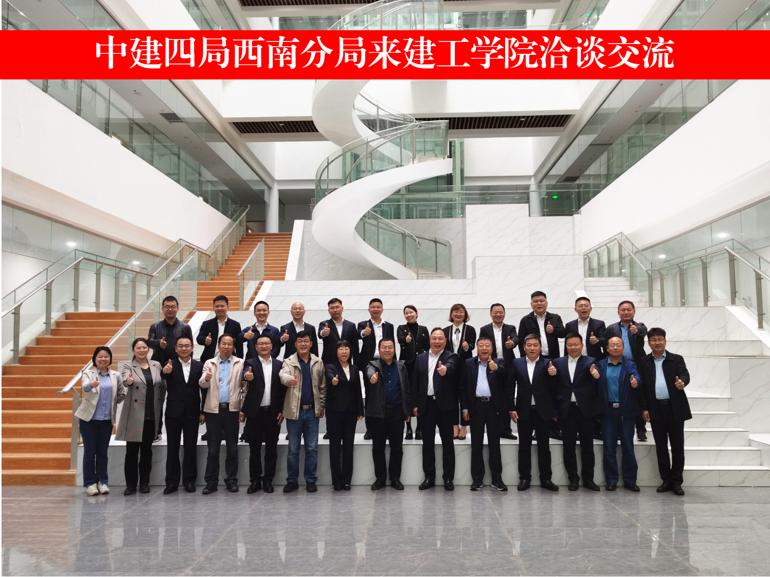 5月9日下午,中建四局西南分局党委书记、董事长亢秀山一行16人到访建工学院,双方在北校区学院会议室召开座谈会,学院党委书记刘明和、院长邢国华、党委副书记孟庆鹏、副院长胡志平、相关科级干部和辅导员参加座谈会,座谈会由孟庆鹏主持。
