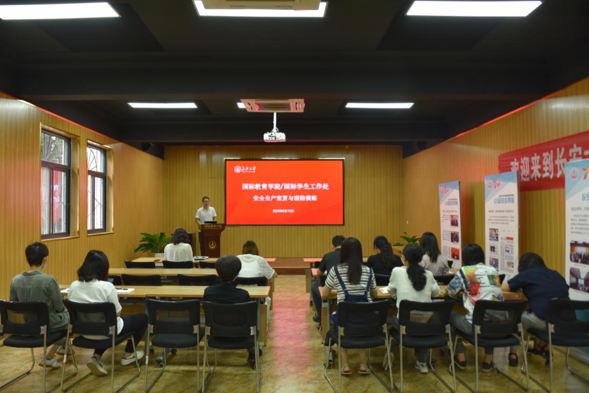 为贯彻落实《开云kaiyun官网2023年安全生产工作要点》及《关于开展校园安全生产重大事故隐患专项排查整治2023行动的通知》的部署和要求,全面深化安全生产主题教育,国际教育学院/国际学生工作处高度重视,严格按照“深入开展‘安全生产月’活动暨安全生产文化提升行动”要求,6月16日上午,开展了安全生产宣贯和师生消防演练活动,学院在校全体教职工和国际学生代表参加主题活动,活动由副院长孙林主持。
