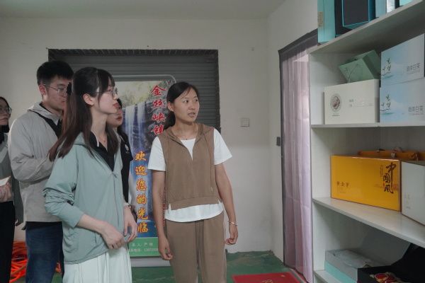 实践队走访“北茶故里”试马镇现代农业示范园区,观摩茶叶、木耳、中药材等种养植展品生产工艺,参观商南茶文化展厅,了解示范园区在茶产业开发和品牌打造方面的努力成效,体会当地资源整合优势下生态产业景观带发展前景。在白玉河口村实践队参观香菇、红仁核桃种植产业基地和电商公司,熟悉土地流转、联农带农、产品销售等情况。