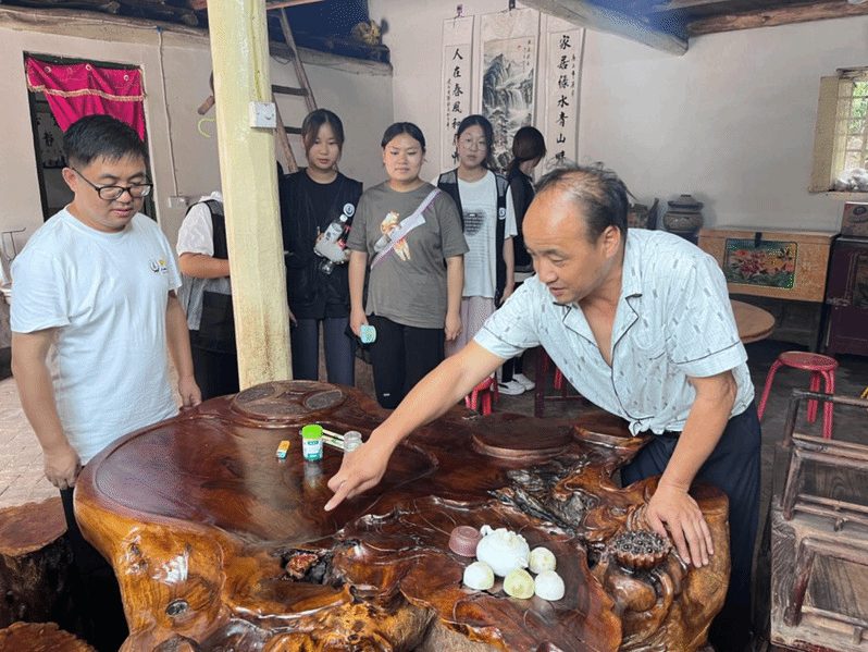 清峪村村民徐大峰向实践团队展示自己制作的木雕作品