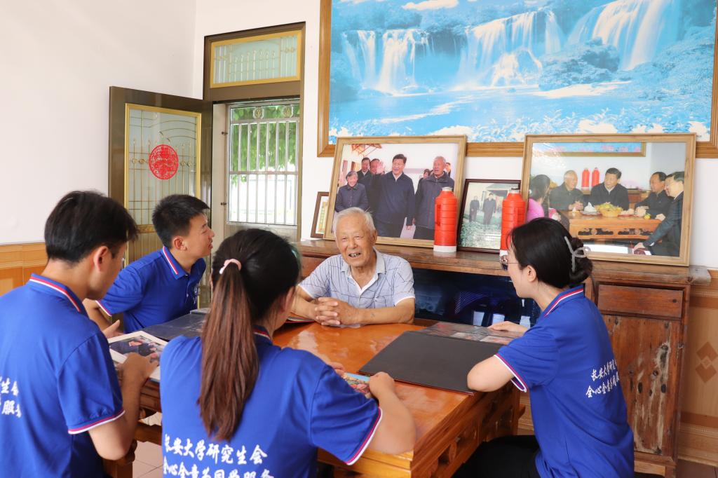 实践队员前往永茂圩自然村,追寻习近平总书记在镇江的重要考察足迹,拜访洪家勇老人。洪家勇为队员们讲述习近平总书记当年来村的情形和本人高龄入党的故事,并勉励队员们要用实际行动践行使命、担当作为。