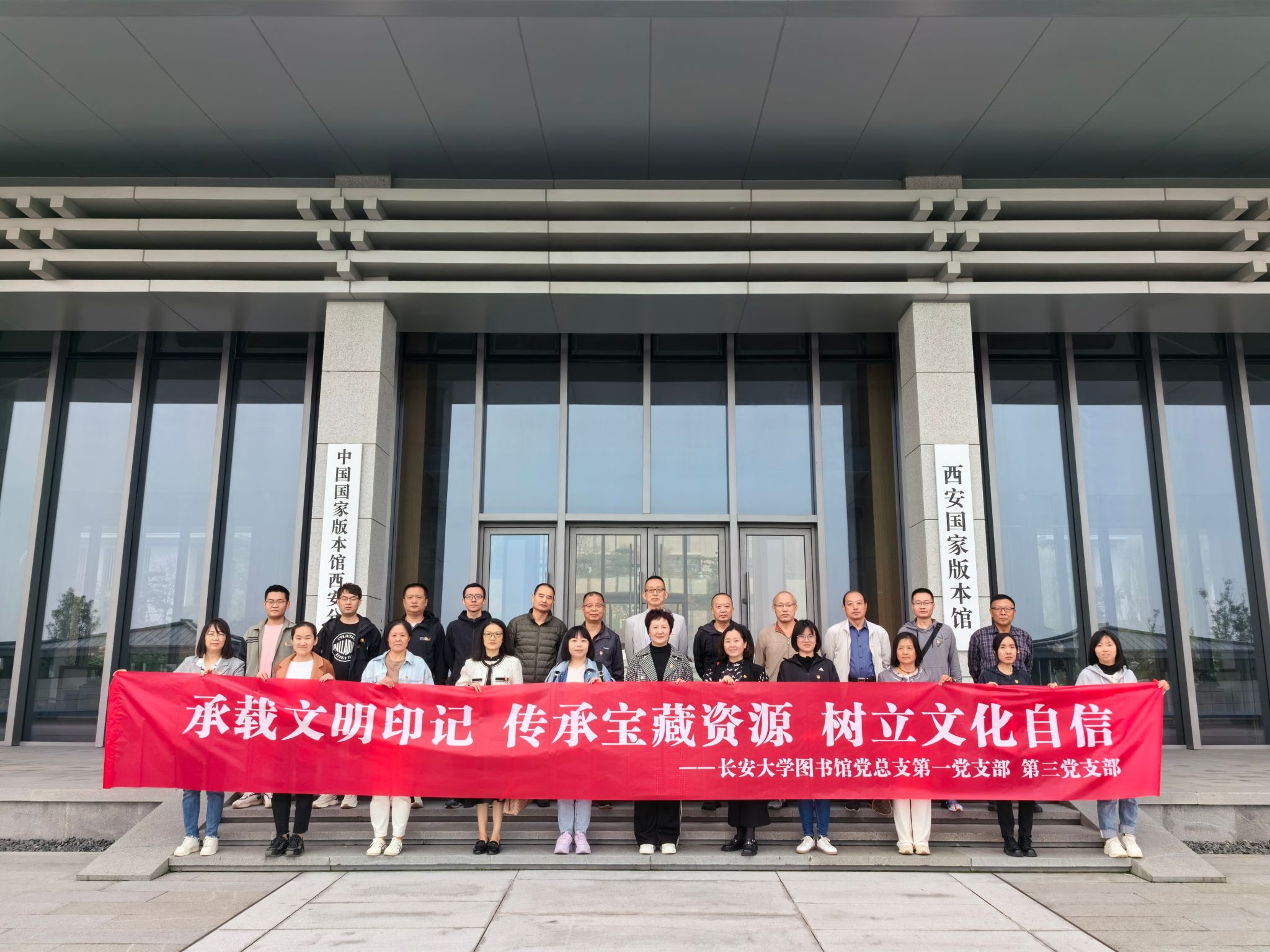 为深入学习贯彻党的二十大精神,学习习近平总书记历次来陕考察重要讲话指示精神以及习近平总书记在文化传承座谈会上的重要讲话精神,10月10日上午,图书馆党总支第一、三党支部赴西安国家版本馆开展“承载文明印记,传承宝藏资源,树立文化自信”主题党日活动。