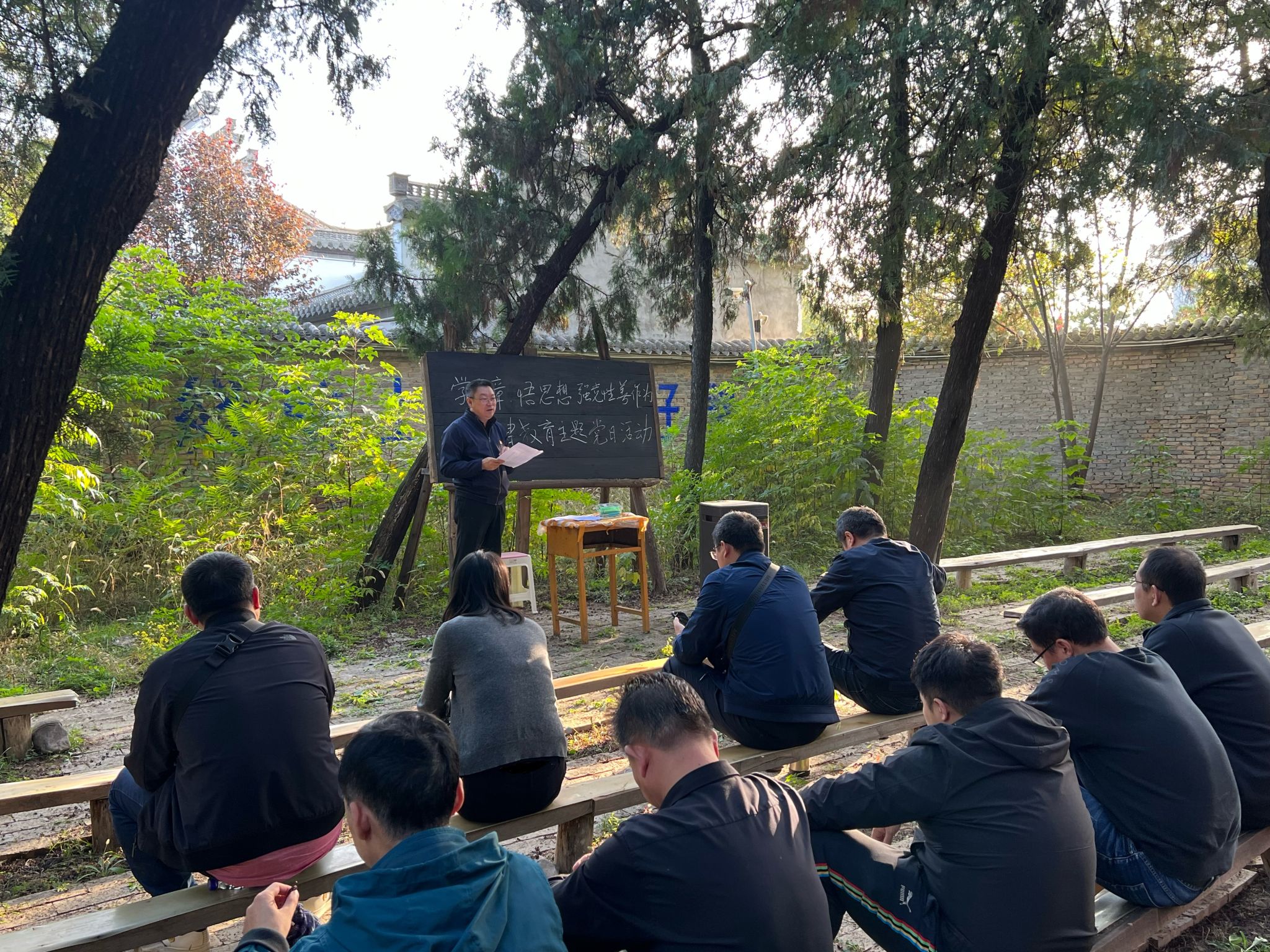 在青训班露天课堂,侯贻栋组织“现场教学”,传达了陕西省人民政府教育督导委员会办公室、陕西省教育工委、陕西省教育厅近期下发的文件精神。他指出,要将本次的学习成果转化为指导实践、推动工作的强大动力,在工作岗位上勇担当善作为,在近期做好后勤领域专项治理工作、全省教育综合督导问题清单整改工作、举一反三,进一步做好校园安全生产重大事故隐患整改工作、秋冬季校园消防安全工作、网络安全工作等;后勤党员干部和职工在工作中要有规矩意识、底线意识,工作中提高廉洁自律意识、筑牢拒腐防变思想防线。