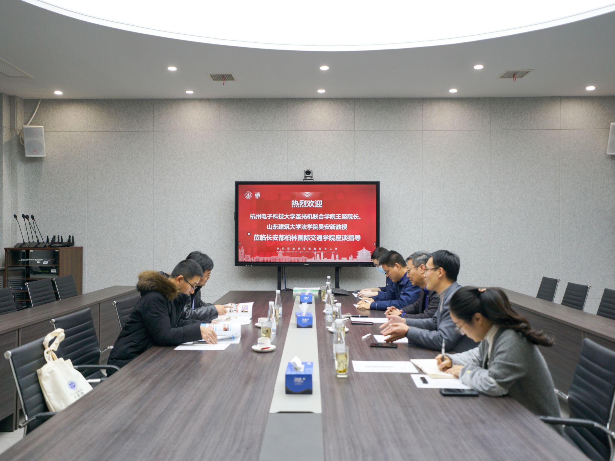 11月15日下午,杭州电子科技大学圣光机联合学院院长王坚、山东建筑大学法学院教授吴安新到长安都柏林国际交通学院,就中外合作办学机构人才培养及提质增效举措进行座谈交流。学院院长汪海年、党总支书记赵亮、副院长柏强及综合办公室相关工作人员参加座谈。座谈会由赵亮主持。
