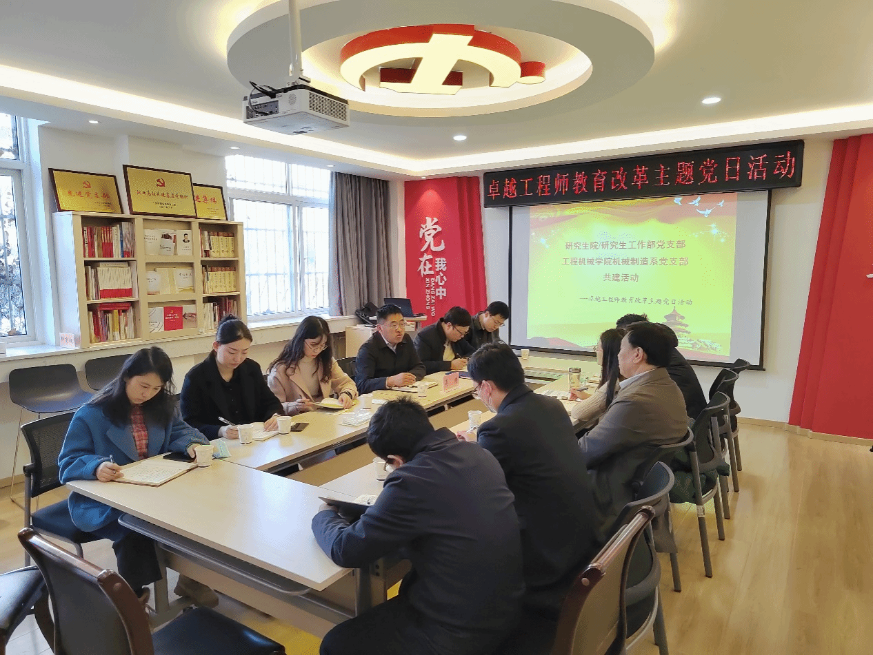 12月6日下午,研究生院/研究生工作部党支部与工程机械学院机械制造系党支部围绕卓越工程师教育改革开展党支部共建活动。研究生院执行院长吴涛,工程机械学院副院长、机械制造系党支部书记贺朝霞,两支部党员代表参加活动。支部共建活动由贺朝霞主持。