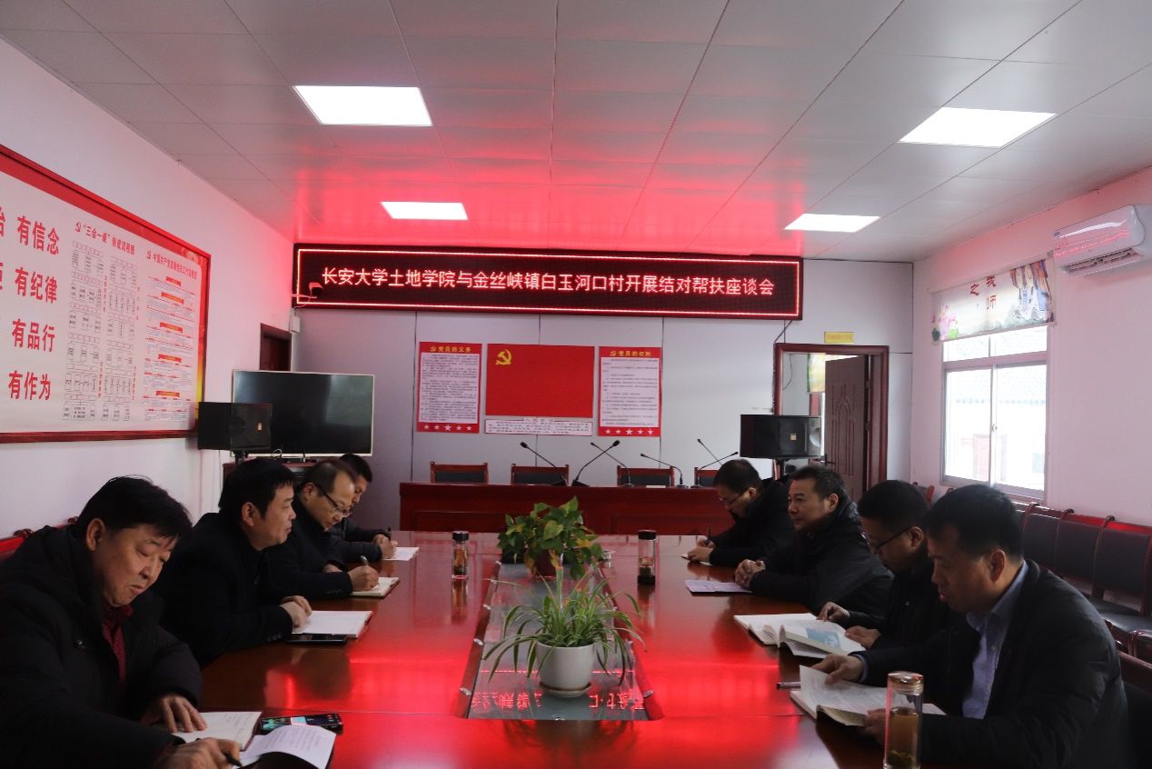 12月5日,土地学院执行院长王刘华、副院长王晓峰率院内专家教授一行4人赴商南县金丝峡镇白玉河口村开展乡村振兴结对帮扶活动,商南县副县长马飞参加座谈会。会议研讨和规划针对白玉河口村目前和未来结对帮扶工作的成果现状和接续进行的路径方案。