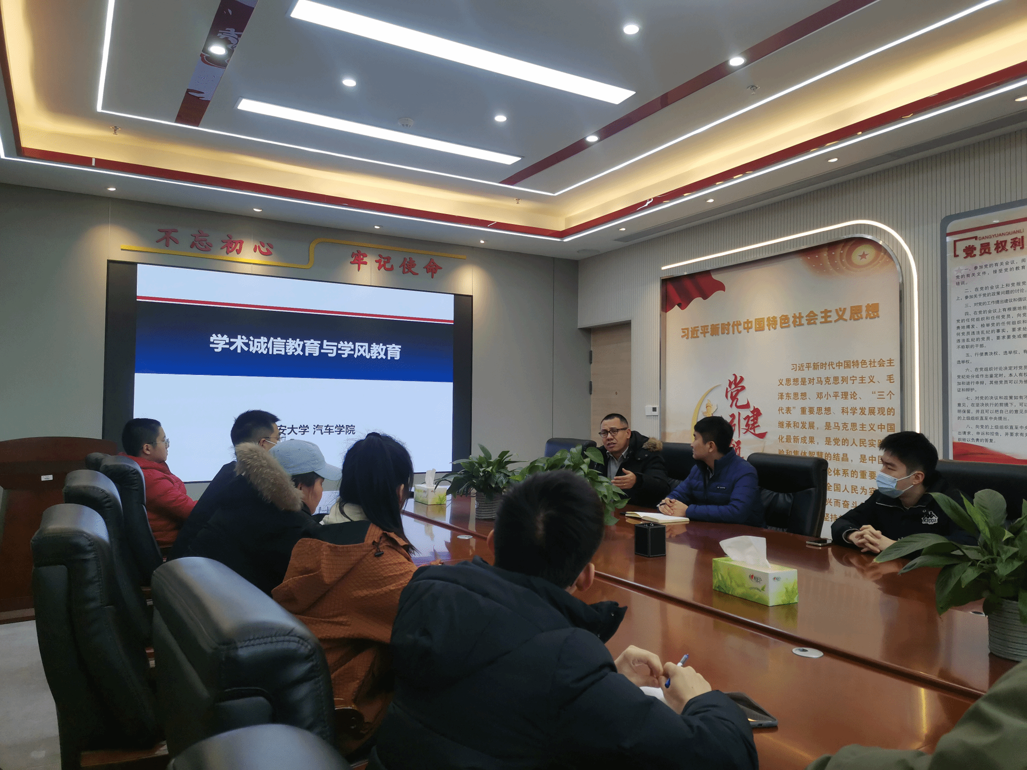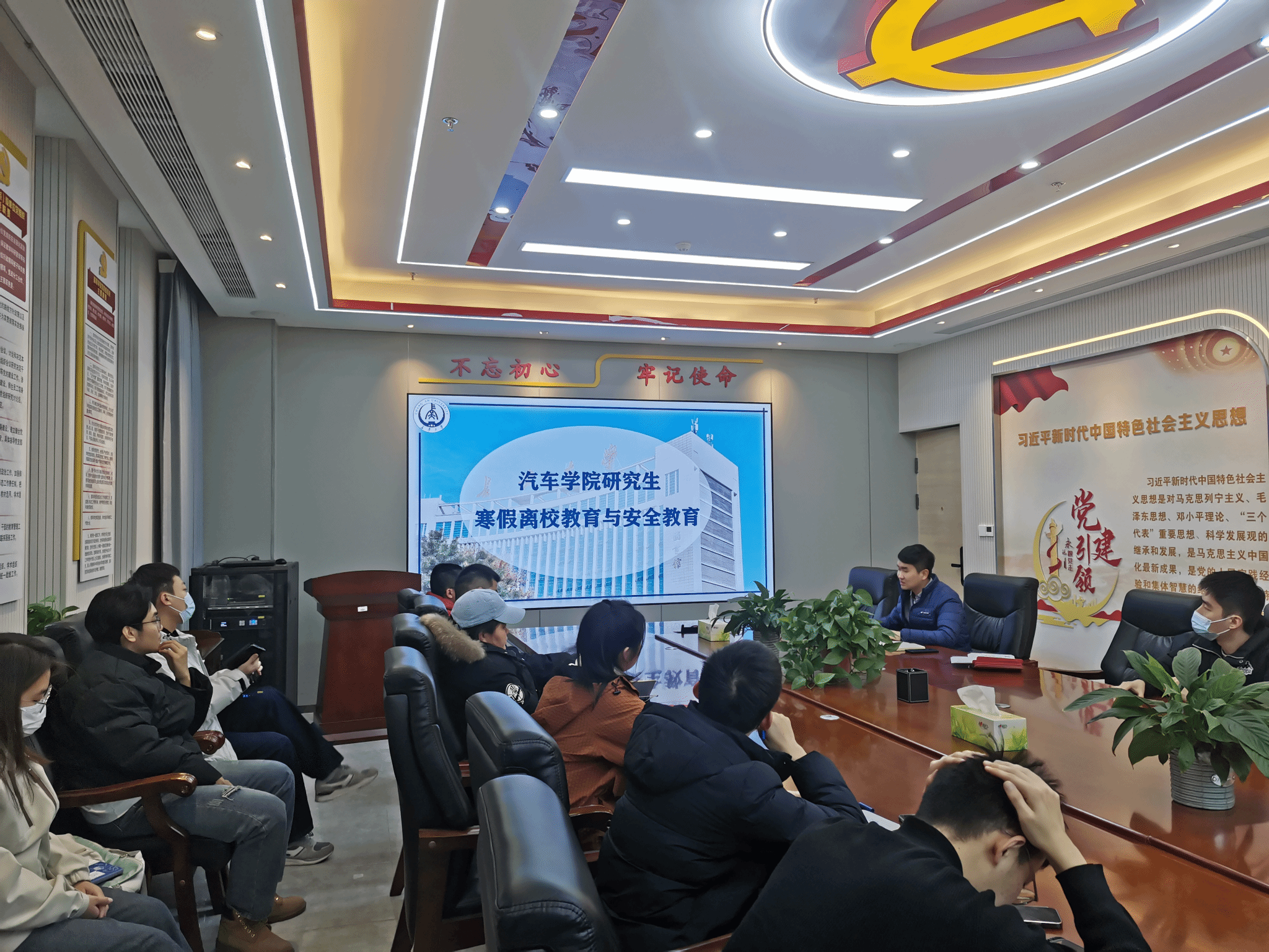 1月13日,汽车学院于学院219会议室开展研究生学术学风教育与离校安全教育。学院副院长牛世峰、研究生辅导员张强及研究生主要学生干部和学生代表参加会议。