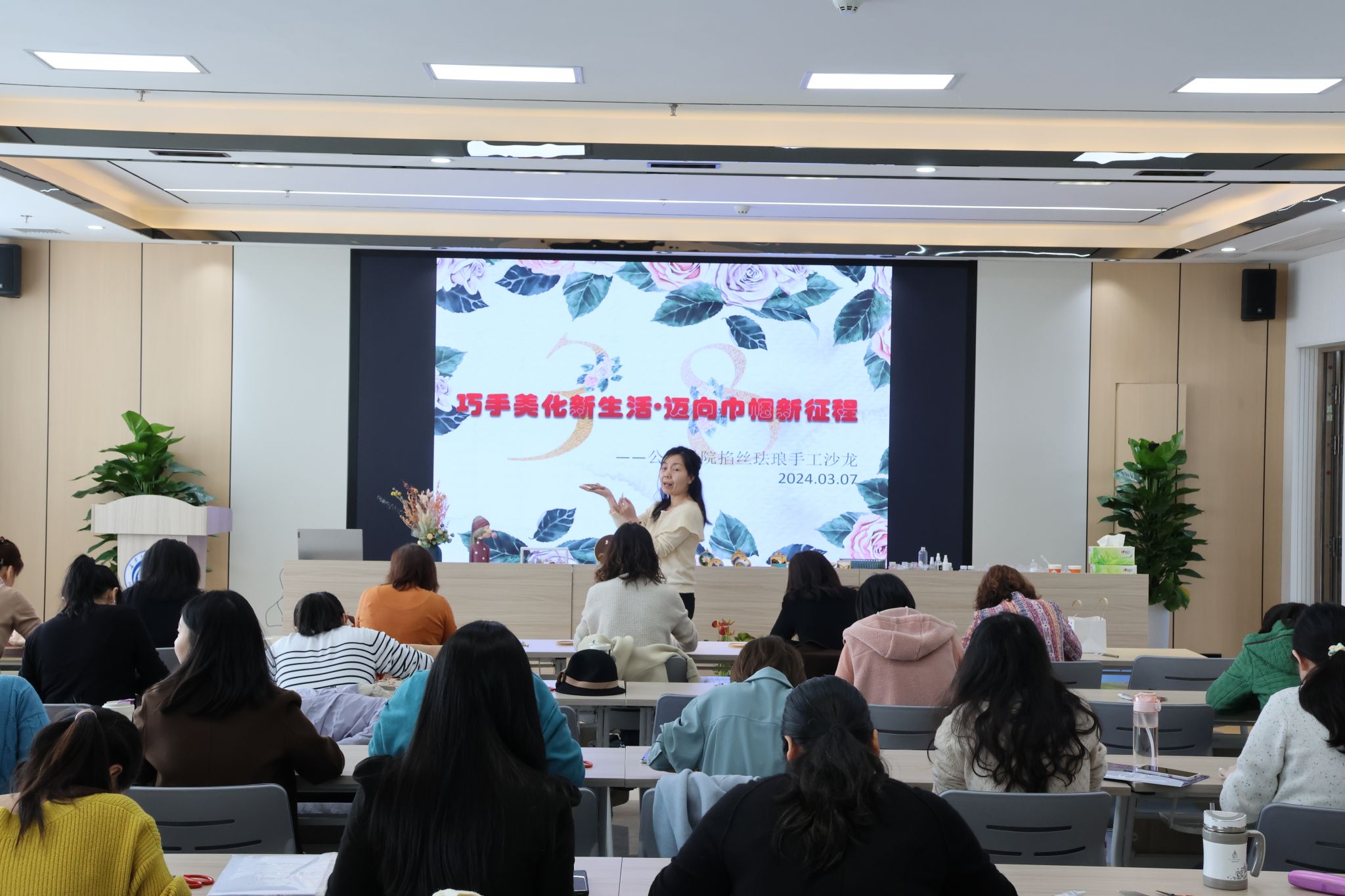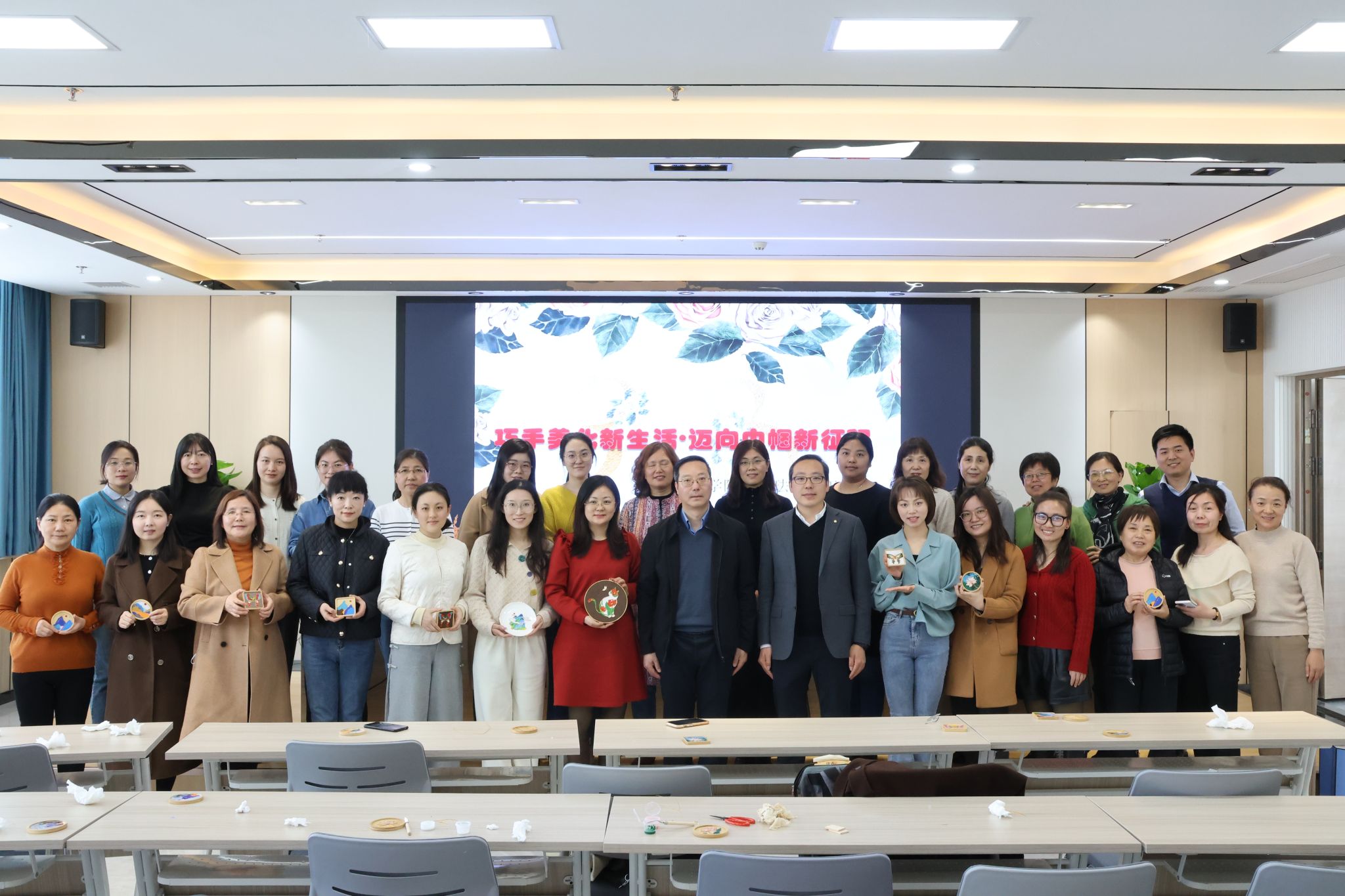 为庆祝第114个“三八”国际妇女节,3月7日上午,公路学院工会于学院六楼第三会议室举办以“巧手美化新生活•迈向巾帼新征程”为主题的非遗•掐丝珐琅手工沙龙,全院33名女教工参与活动。