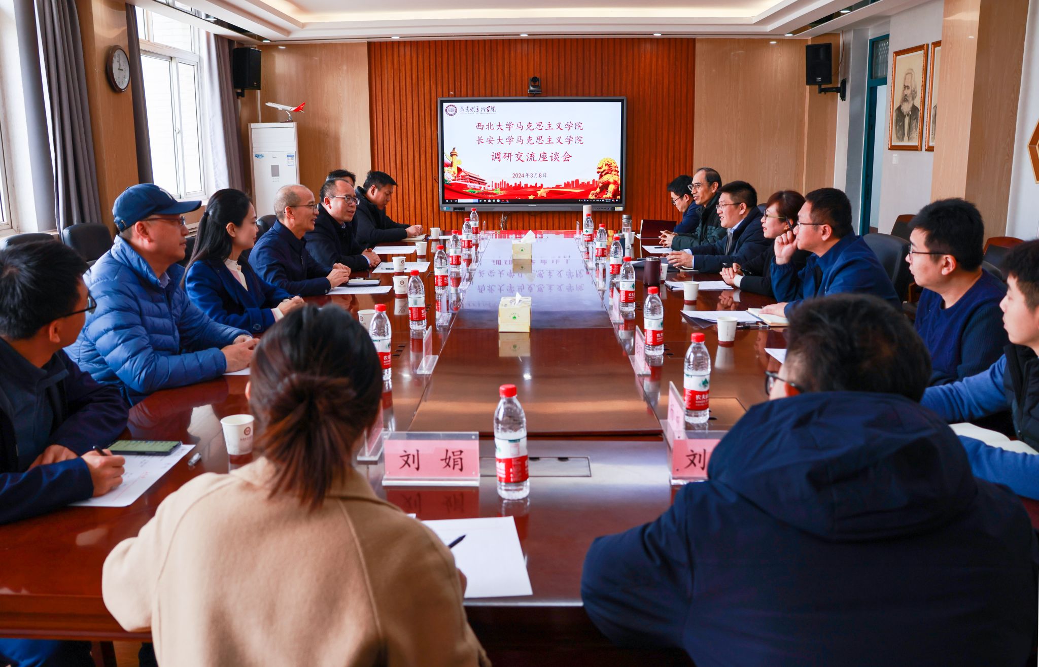 何博重点介绍了西北大学马克思主义学院的发展历程、学科建设和科研团队情况,他表示,西北大学马克思主义学院正努力将学院打造成马克思主义学科群繁荣发展的驱动器和新文科建设融合创新的试验田,希望两院深化交流合作,提高思想政治教育效能,为国家培养一批现代化思政人才。